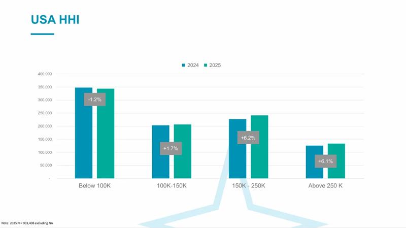 E analisis riba ingreso (Household Income – HHI) ta confirma cu e enfoke ta dunando resultado. Segun e dato di 2025, e porcion di turista for di Estados Unidos cu un ingreso anual di mas cu USD 150,000 a crece cu 6.2%, mientras cu esnan cu un ingreso di mas cu USD 250,000 a registra un crecemento di 6.1% compara cu e aña anterior. E crecemento den e dos gruponan aki ta subraya un preferencia creciente pa experiencia di mas calidad y ta confirma cu Aruba ta sigui atrae bishitantenan cu mayor capacidad di gasto di manera sostenibel. Tambe, den e luna di februari, Aruba a logra un score di 9.1 riba e Guest Experience Index, reflehando un nivel halto di satisfaccion entre bishitanten. Pero e ta subraya tambe e importancia di sigui inverti den e producto Aruba y den e experiencia!
